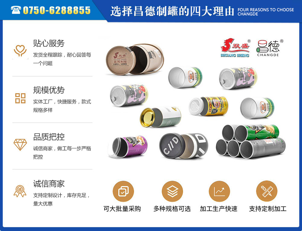 江門(mén)市昌德五金制罐有限公司位于江門(mén)與珠海臨近的古井鎮(zhèn),是專(zhuān)業(yè)生產(chǎn)紙罐,食品紙罐系列的包裝研制、開(kāi)發(fā)、生產(chǎn)的廠家,從建廠至今,公司本著“重合同、守信用”的原則,以“質(zhì)量求生存,客戶至上”為經(jīng)營(yíng)宗旨,贏得了很好的信譽(yù),公司擁有國(guó)內(nèi)一流的技術(shù)設(shè)備和多年的生產(chǎn)經(jīng)驗(yàn)。年產(chǎn)休閑食品紙筒500萬(wàn)左右,紙筒2000萬(wàn)支左右,易拉罐,食品罐等1000萬(wàn)左右,產(chǎn)品銷(xiāo)往各地。我廠是以高科技為先導(dǎo),以技術(shù)創(chuàng)新整合為手段,成為迅速崛起的專(zhuān)業(yè)性包裝企業(yè),憑借艱苦的創(chuàng)業(yè)精神和集體智慧,采用規(guī)范的現(xiàn)代企業(yè)運(yùn)行機(jī)制,形成具有鮮明特色的企業(yè)文化模式和管理...